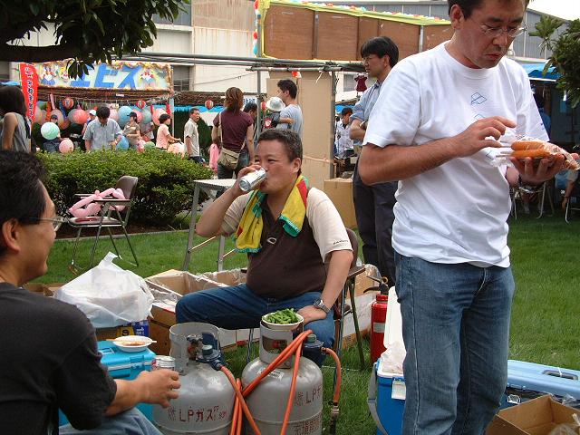 7月31日(日) 横浜デート。109に行って映画を見ようとしたが、面白そうなのがない。 そのかわりに外ではアロハな人たちが踊っていた。アロハいいねぇ。 ゲーセンでヒマをつぶしつつバルーンを子供にあげたりして良い人を装う。 リラックマの小銭要れやソーラーセル付きハロ(耳が動く)をゲットー! 7月30日(土) in横浜。その前にサッカーをしたっけか。今週は9時半からスタート。暑くなってきたから時間をずらしたのだ。昼真っ盛りにやるよりも幾分涼しかったに違いない。それでも暑く、みんなへばっていた。 最近昼休みに軽くサッカーをやっているが、そのおかげで息切れしない。どうも調子がいいぞ。がんがん攻めれたしビシッと守れた。 横浜に着いたのは2時半。昨日YっちはRいたんとランドマークタワーのホテルに泊まったらしくて家に帰っているところだった。俺は横浜から東戸塚へ。 東戸塚のいつもネカフェで卓球をする。ラリー何回続くかやってみた。最高65回。あいちゃんにはまだもう少しかなわないね。 そのあと宿の予約をして新横浜へ。Tだおを呼んで少し酒を飲んだ。花火もやった。コンビニでちらりと買い込んで川の近くでシュポンと打ち上げたり、凸凹の地面で回らないねずみのはじける音を楽しんだ。 終わってみたら結構いい時間。いや、深夜だ。Tだおは明日沖釣りらしく朝早いのによく付き合ってくれたよ。 ホテルに帰ってもまだ遊ぶ。天使Yっち! 7月27日(水) 夏バテにいいと聞いて鯖の味噌煮とやらに挑戦。ばかうまい。 7月26日(火) 退社途中に変なものを発見。なんだこれ。 7月24日(日) 朝7時半に会社に集まって信じられないけど祭りの片づけをする。ねみいよ。 そのあと朝マック・ボウリング・昼飯・ネカフェでボンバーマン・・・と、遊び呆けた。自分にお疲れ。 7月23日(土) ついにやってきたTうしば夏祭り。小学生の時よりもずっと無邪気な気持ちで楽しみにしていた気がする。 朝8時に会社に集まって@第一応接室から机や椅子や商品などをバンバン運び出す人、A設営をする人、B看板にバルーンをつける人。俺の仕事は3番で、看板に「バルーン工房」の文字を風船でつける事だった。これが結構難しい。より見やすく美しくするには・・・あーでもないこーでもないとTかはしさんとIのうえさんと3人でがんばっていた。30分で終わるなんて誰が言ったんだ?まぁ俺だけど。「房」の文字が複雑だから大きくなってしまう。「バルーン」の文字とのバランスをとりつつ、と、なかなか難しいのだ。アーチ状にすることでかなり誤魔化す・・もとい美しく仕上げることが出来た。 凝りだしたらきりがない。Sまださんから催促の電話がじゃんじゃん鳴っていたから終わりにして会場に持っていった。みんなの反応は・・・好評でした!おめでとう。お店の様子はこんな感じ。手作りっぽいでしょ? 会場の設営はかなり物が多くて大変そうだった。フリーマーケットはきれいに並んでいてまるでお店みたいだった。いよいよ祭っぽくなってきた。わくわく。 お弁当を食べる。デラックス弁当。鮭の骨がやたら多い以外は完璧だった。ぅんまいずら!満足げな様子。 天使の羽の宣伝はTかはしさんにお願いしました。(注)似合っていますが大人です。 午後からはバルーン作り。ストックを作ろうという作戦だ。ただし場所があまりなくて程ほどになってしまった。Yまもと君は偉いことに金魚をいっぱい作ってきていた。ビニール袋に入ってかわいらしい見事な金魚じゃ。 祭は午後2時からということだったが1時くらいにはもう一般の客が入ってきていた。 でもお店がメイン会場から外れたところにあったから店の前を歩く人は少なくて、バルーンのお客はゼロだった。 そこは客引き担当のTかはらさん。徐々に売れ始めた。教室にも客が入ってKいづかさんが若い女の子にモテモテだったらしい。やはりいい男ってのは相手がなんであれもてるんだねぇ。 ちっちゃい子に天子の羽が売れた。カワイイ、カワイイ、超カワイイ!! フリマの方も忘れてはならない。この頃はNまっちがお客さんと話していた。 俺は初め店頭に出て作る役よりも客引きの方が重要ってことでやっていたが、通り過ぎる人に無視される仕事を淡々とこなす。 お酒好きの課長。写真中央で椅子に座って淡々と仕事をこなしているかたが課長です。 時折「天使の羽」の注文が入り、裏に下がってTかいさんとハイパーコンビネーションで作っていた。これは左右のバランスが合わないと商品にならないし、最後のあわせるところで割れやすいからなかなか時間がかかる。途中から本気で売れ出したから作り置きしようって事になったが間に合わない。天使の羽用の風船もとうに尽きて赤い羽根とか緑の羽を売っていた。山田さんの同期の女性がかなりアレで、無理難題を言ってくる。天使の羽はもともと子供用なのだがこれのLサイズを作れとか、色はこれにしろとか、で、会計はYまださん。大変な同期ですねぇ。 一生懸命作った天使の羽も数時