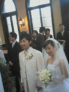 7月31日(月) 失敗した。気持ち悪い。食欲がない。なぜだろう?どうやら風邪のうたがいあり。 うちに帰ったらYっちが2次会招待状を印刷してくれていた。式の招待状の時もそうだったけど、今回も洗濯干し部屋の畳が見えなくなるほどに招待状が敷き詰められている♪ 7月29日(土) Tゃあちゃんちでお昼までゆっくりして、おねーちゃんと4人でモスバーガーを食べる。 YっちはPんたと戯れていましたとさ。 7月28日(金) 午後上がりいえい。夕方6時半には横浜で試食会にいかなければならないから、午後はお休みをもらったのだ。でも少し時間があるので美容院で髪を切る。Kわぐちと仲良く連れ立って行った。 美容院に行くと必ず聞かれること「今日はこれからどこか行くんですか」。 シャンプーの人に聞かれ、カットの人に聞かれ。同じ事を何度も聞くな! でも得意気に言ってやった。 「これから横浜で結婚式の試食会なんです。1万8千円のフレンチフルコースを食べるんです」 どうだ。 そんな話に夢中になっていたせいもあって髪は少し切りすぎた様子。 Kわぐちに籠腹まで送ってもらって横浜へ行く。 Yっちは会って一言目に「栗坊主」と言った。こんないい男を捕まえてそりゃないっすよ。 試食会まで時間があったから結婚式関係の買い物をしようということでLoftにいった。いいやつあった。席次表のまっさらな紙。これに印刷して作るのだ。1部あたり70円ほど。安い。でも、充分。要は心意気ですよ 試食会、結婚式に近い形で会場がセットされている。ゲストはみんなここで式を挙げるカップルたち。 食事は19時スタート。シャンパンで乾杯。うん、これは大人の味だなぁ。 メニューを抜粋します 「オマール海老のサラダトリュフを添えて」 「フランス産フォアグラのソテー マッシュルームのソース」 「かぼちゃの冷たいポタージュ」 「金目鯛 ノイリー風味のホワイトソース」 「お口直しのメロン 赤ワイン漬け」 「フランス産ピジョン ロゼ色に仕上げセップ茸のソースで」 「自家製ウェディングケーキ デザートブッフェとご一緒に」 「カフェ」 いつのカップルか知らないが会場にはプロフィールビデオが流れていた。最後はプレゼントと称して庭で花火を上げたりデザートブッフェをやった。 要するにこんなんありますけどいかがですかというのだ。あちらさんは一つ一つのアイテムが商売だからここぞとばかりに魅せてくる。 そんな中Yっちが気持ち悪いといって中座してしまった。かぼちゃまでは大丈夫だったんだけどなぁ。どうしたんだろうってんですこし外で休む。お酒が強かったのか、フォアグラが口に合わなかったのかわからんけど、かわいそうにメインディッシュを前にダウン。 その間も会食は進んでしまうわけで、食べないともったいない。俺は泣く泣く会場に戻ってメインディッシュをYっちの分まで2皿食べた。 戻ってきてデザートブッフェのシャーベットで少し復活したらしい。よかった。 全体に料理はうまい。どれもこれもこだわりの一品だ。味に文句はないけど値段を何とかしてくれ。 気になったのがお酒を飲むとトイレが近くなることだ。主役をやっているときは席をはずせない。どうしたもんか。 会食の後れいたん姉妹がベイサイドガーデンに下見に来る。写真をパシャパシャ撮って帰る。 ジャックモールのパスタ屋さんでお茶をしてちゃあちゃんちまで送ってもらう。 そんでTゃあちゃんちで赤ちゃんを抱っこしたりゲップさせたりして帰っていった。 7月23日(日) 朝一番から祭の片づけをして午後は・・・何していたんだっけ? 7月22日(土) 東芝夏祭り開催。チャリでYっちと二人、9時に会社に到着。午前中は準備で、俺とYっちは看板に風船で「バルーンハウス2」という文字を作って貼り付けた。なかなか見事な出来じゃないの。 去年とはお店のレイアウトを大きく変更してまるで工場のように量産体制になっている。 俺、Tかいさん、Yまもと君は金魚担当。Yっち、Tかやま君、Tかはしさん、Nしじまさんは花のブレスレット担当。Oかもとさん、Nまっち、Yまだ君はサーベル担当。Nがともさん、Kいづかさんはプードルとクマ担当。と言う風にひたすら担当商品を作るのだ。 ともあれお弁当と缶ビ○ルで一休み。午後からは戦いが始まるから英気を養うのだ。 最初は売れないんだ。去年もそうだった。だからひたすらストックして行く。金魚は20個くらいストックしたかな。まぁ休み休みやろうサ。 すこしだけお店を離れて歩いてみた。たいしたことないなぁ。 30分くらいぶらついて戻ると 「Eべ、金魚が足りない。作って!」 ええー?あんなにストックしていたのに!やるじゃないか、愚民共め。 しかしおれはもう神輿に行かなければいけない時間となっていた。 金魚片手にお神輿と言うわけには行かないからしかたない、着替えてみこしのスタート地点へ向かった。 もうすでにかなりの人だかりが出来ている。今年は東芝とTMDと1基づつ。全部で15人くらいいたのかな。 始まるまでがややこ