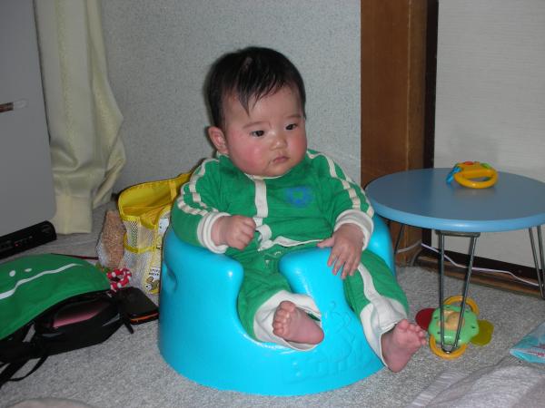 Tつきくんは居た。いい子にしてる。今日は緑色の服を着てる。これもカエルだ。