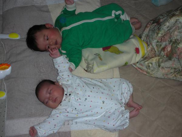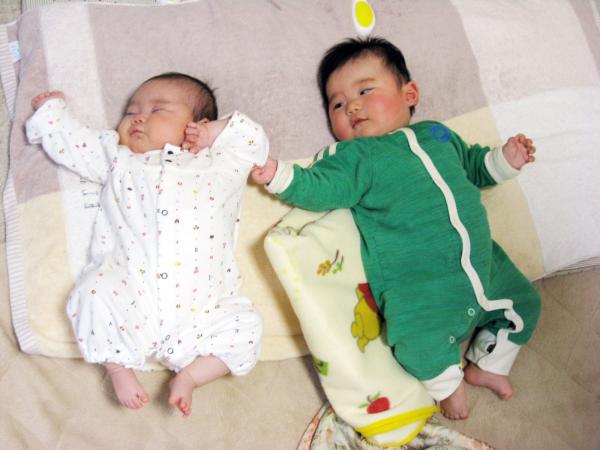 Kはるを隣に寝かせてみると、大きさの違いが良ーく分かる。