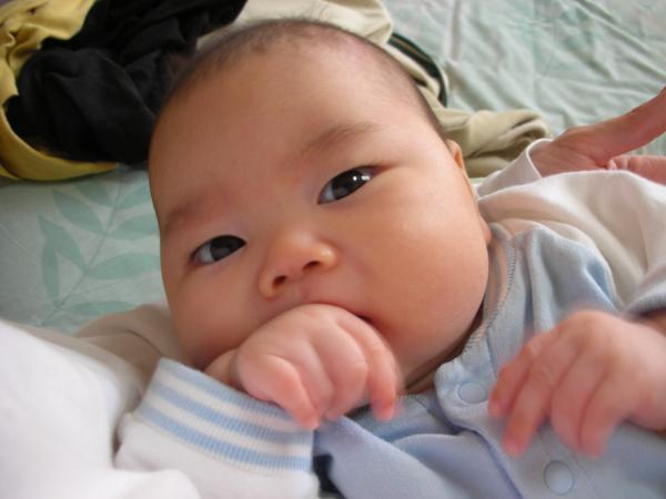 最近Kはるは物をつかめるようになってきて、口へ運ぼうとする。気をつけねば。