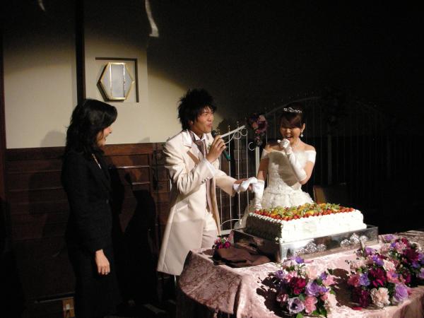 新郎新婦が入ってきて、すぐにケーキカットとなった。