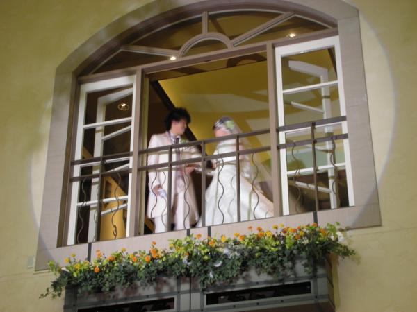 最後にロミオとジュリエットみたいなところからブーケトス。うちらにはもう未婚が居なくって、Kはるくらいか?とか言っていたけど、まあ知らない人がキャッチしていたよ。