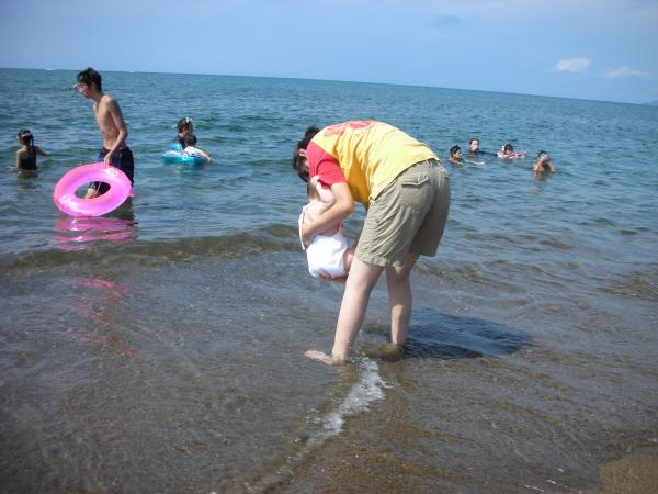 やっぱり潮風と海の反射で余計に焼けるんだね。6ヶ月の赤ちゃんにはまだ早い。