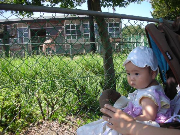 キリンはでかいなぁ。しかし小春の興味はイマイチの様子。遠いからかな?