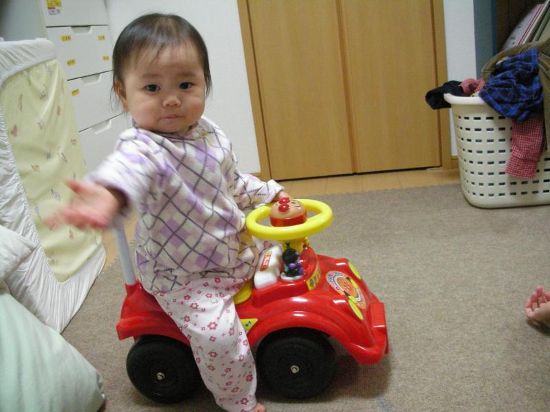Kはる、アンパンマンカーに乗る。「ヘイ、パパも乗るかい?」