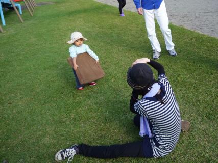月岡公園にはローラー滑り台がある。結構長いやつで、お尻が熱くなるので座布団を持ち込んだが、それをKはるは一生懸命運んでくれる。