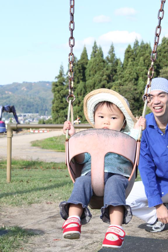 腰まですっぽりはまるブランコがあった。なんてすばらしい!これならKはるでも安全に乗れる。