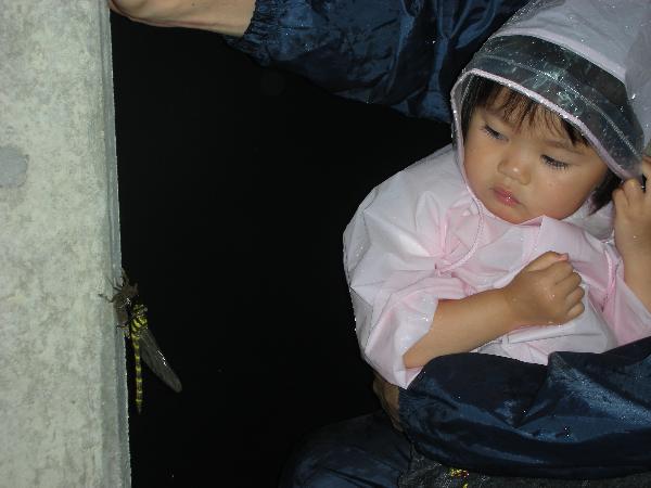 玄関のところにオニヤンマがいた。ちょうどさなぎを脱いで「羽の乾燥中です」だった。