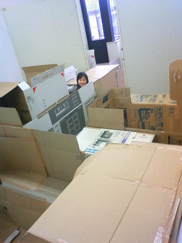 そのあとパパの猛烈な誘いでダンボール迷路をやる。