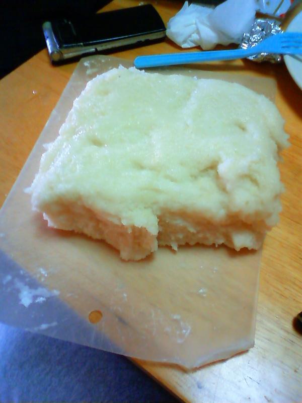 Jんぼりんパワーでタッパに一杯に入ったもちを引き剥がす。