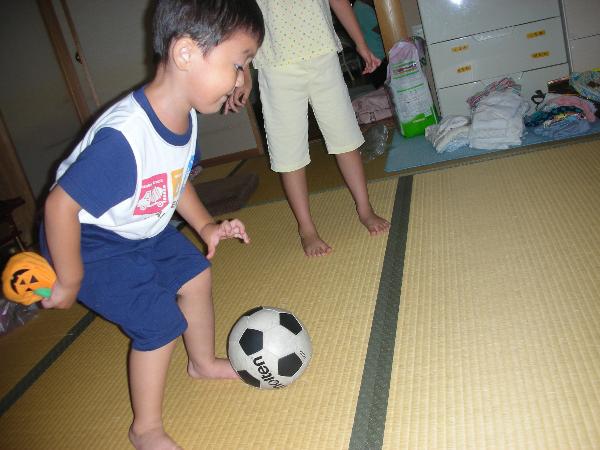ネットは無しで、転がして打ちあう。