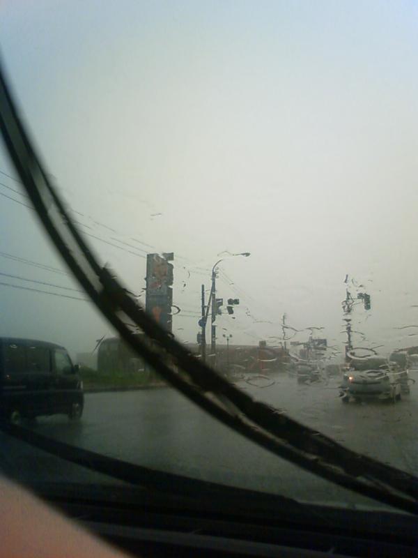 会社からの帰り道、ひどい雨に会う。