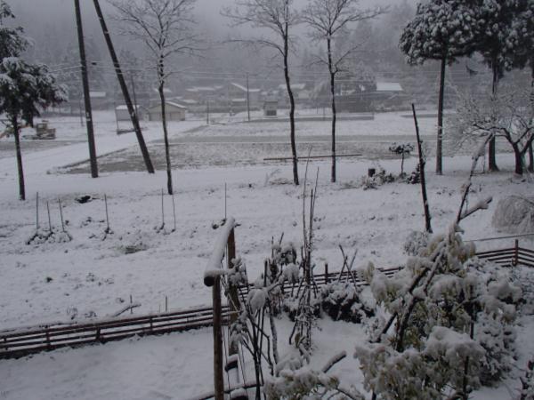 雪が降ってた。かなりの大粒。牡丹雪だ。