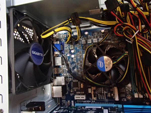 マザーボードと本体のでかいファン。こいつはとても静か。