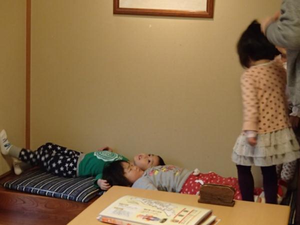子供たちはさっさと食べ終わって、本来壷とかが飾られそうなスペースで盛り上がる。