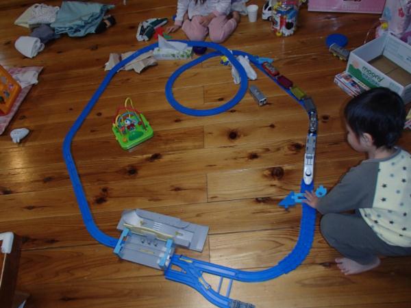 DいちゃんとKうちゃんはトミカとチャギントンを大量に持ってきてて、Sいやがはまる。