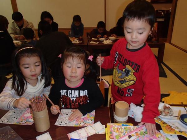 YきえちゃんもAみさんも慣れたもので子供たちが暇をつぶせるお絵かきとかパズルとか準備がいい。