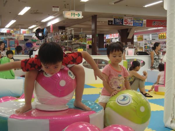 暑い暑いと言いながら人ごみの歩道を歩いてちびっ子広場へ行く。
