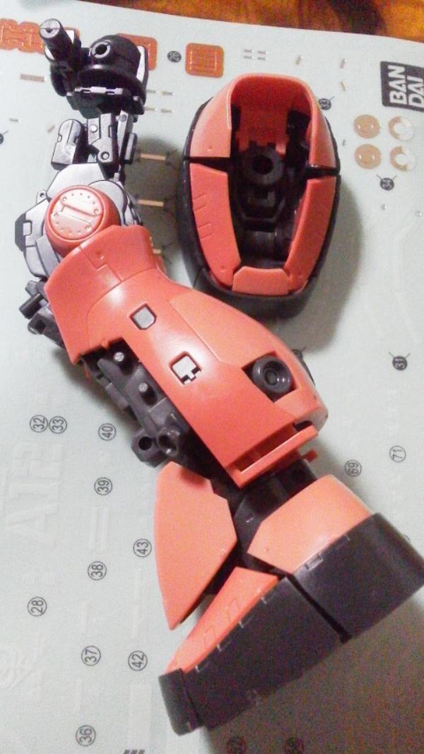 ずーーーっと昔にYっしからもらったガンプラ「リアルグレードシャアザク」に着手する。