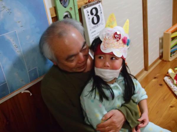 Tなつは全力泣きでジジに抱っこされていた。